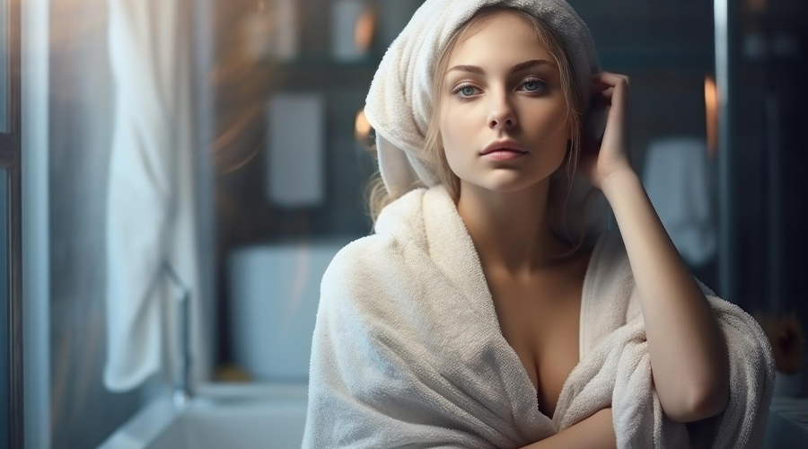After cleansing or showering, resist the urge to vigorously rub your skin dry with a towel. Instead, gently pat your skin with a soft, clean towel to retain as much moisture as possible.
