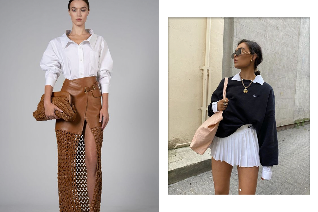 SKIRT: Skirts are always an option when you want to transition from a day out to a night one, and with your skirt, you can match a silk Blouse which will give you both an office look and a night one too.